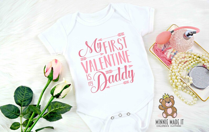 20+ Daddys First Valentines Day Images. Newborn gift white body suit with my heart belongs to mommy design in black and metallic red. Valentines day quotes for your dad will make him feel happy and proud of you.